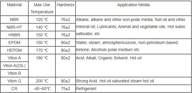 The gaskets are made from various materials to suit different types of fluids. Common materials include FKM, Silicone, NBR, and EPDM.