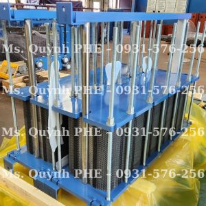 Khung của bộ trao đổi nhiệt bao gồm: top bar, bottom bar, support bar và 2 khung thép carbon (Frame). Những bộ phận này được liên kết chặt chẽ với nhau bởi bulong (tighten bolt) tạo thành bộ khung cho thiết bị trao đổi nhiệt, đồng thời đóng vai trò giúp các tấm trao đổi nhiệt di chuyển phía trên